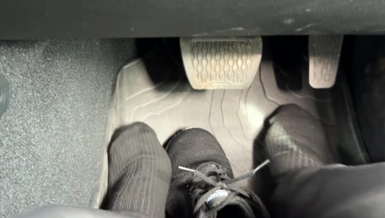 またネットで言われていた「左足の部分が狭い」というのもその通りで、張り出しがあるため左足を出しておくスペースが無い。