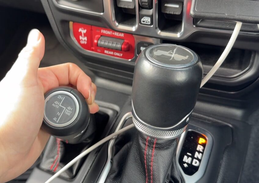 シフトノブの左側で4駆と2駆、ローレンジの切り替えなどが行える。