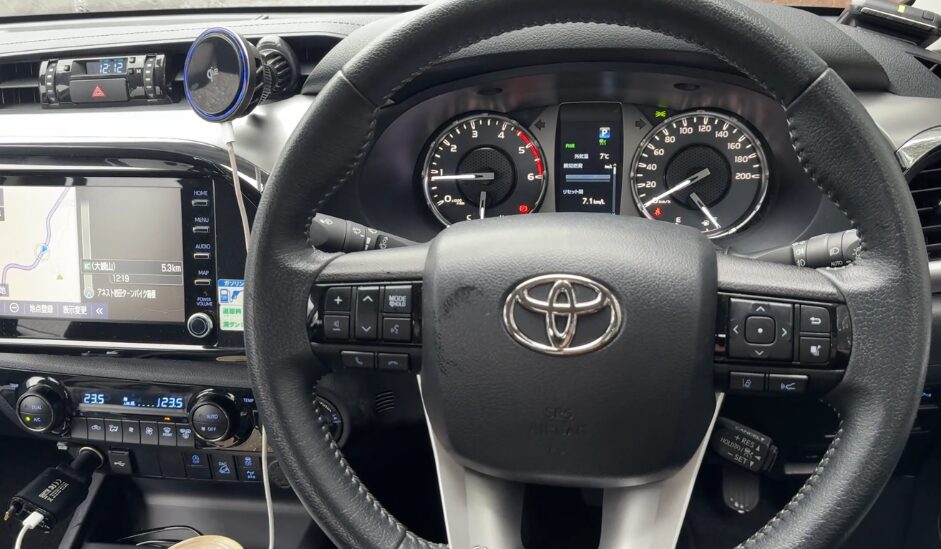 まず、エンジン音と振動がかなり明確です。最近の乗用車系ディーゼル、たとえばメルセデスやBMW、マツダのディーゼル車では、運転中に「うるさい」「振動が気になる」と感じたことはあまりありません。しかしハイラックスは、始動直後からディーゼルらしい音と振動がしっかり入ってきます。率直に言って、かなりうるさい部類です。