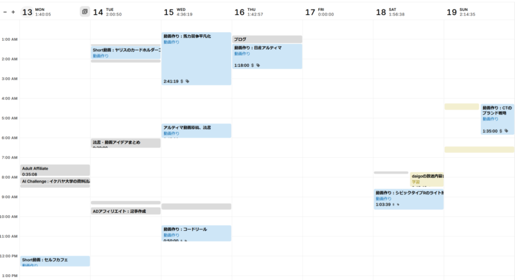 睡眠やダラダラなどの非生産的活動は記録を取らず、将来に繋がる活動や日々の仕事のみ記録を取った。
